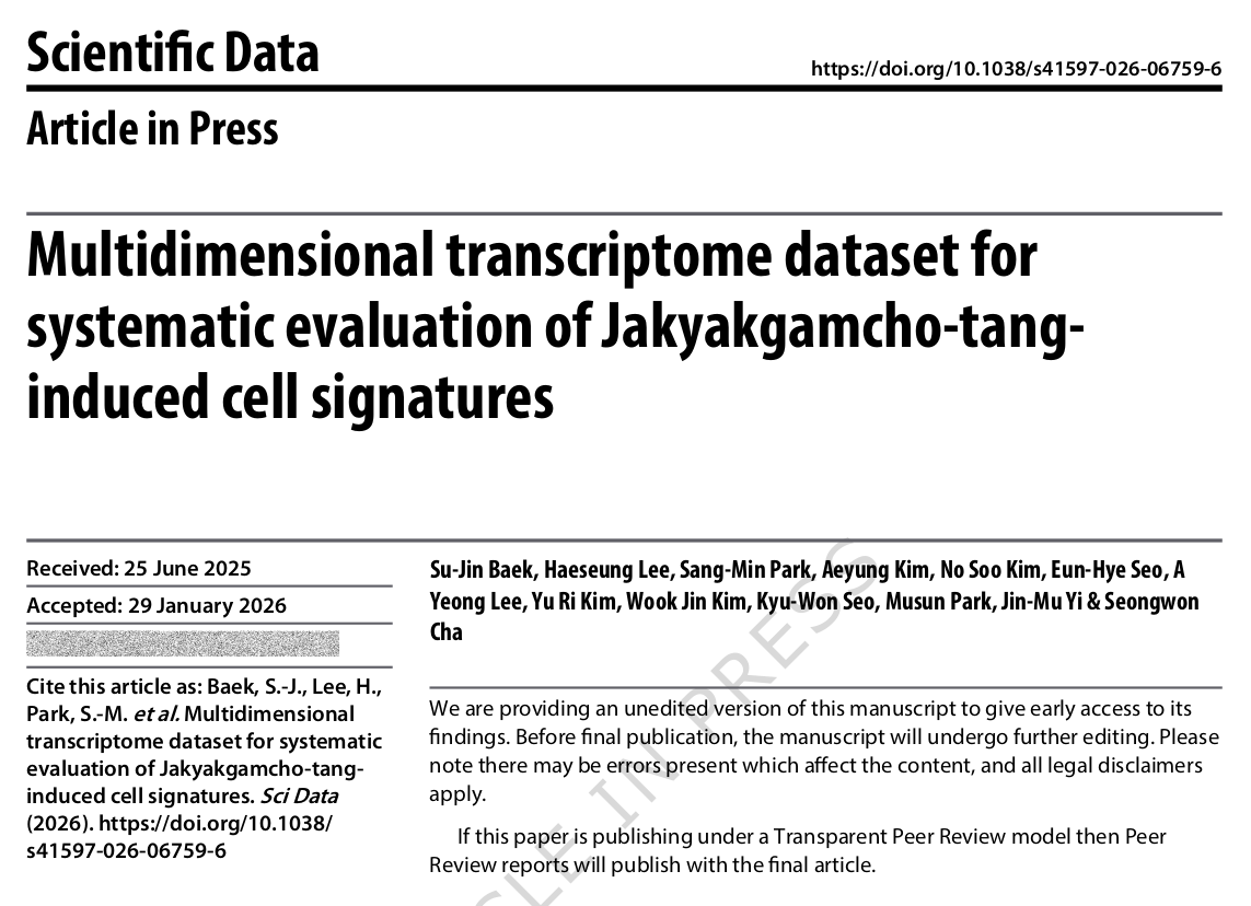 Multidimensional transcriptome dataset for systematic evaluation of Jakyakgamcho-tang-induced cell signatures