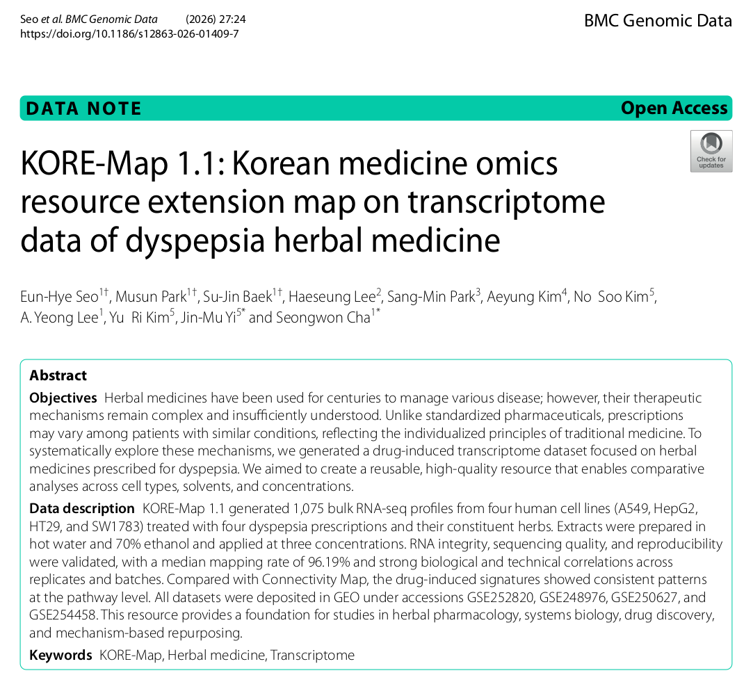 KORE-Map 1.1: Korean medicine omics resource extension map on transcriptome data of dyspepsia herbal medicine