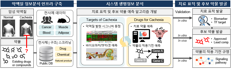 We develop bioinformatics platforms that integrate diverse public omics data to identify therapeutic targets and predict candidate drugs for cancer cachexia.