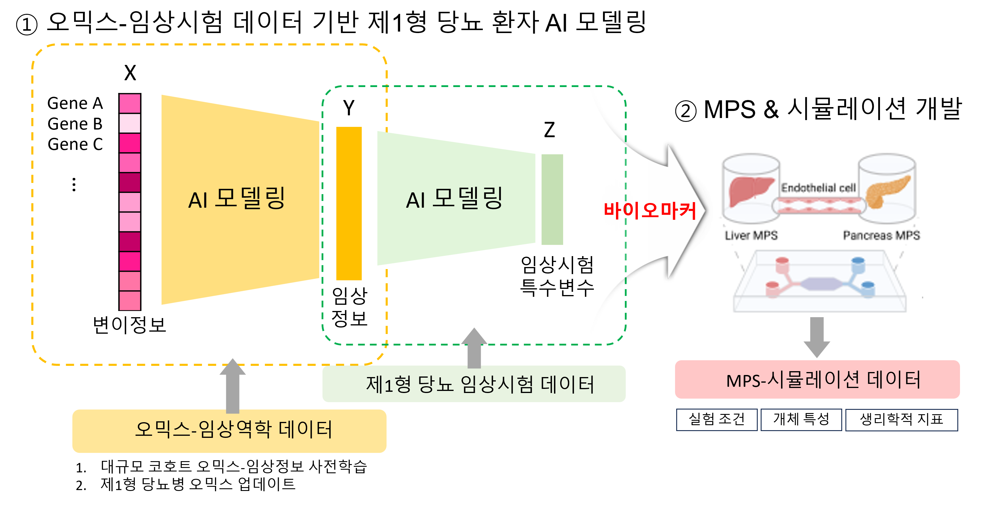 We develop AI models that integrate clinical trial data and multi-omics information to evaluate therapeutic efficacy in type 1 diabetes. These models further contribute to the development of microphysiological systems (MPS) and digital twin platforms for precision drug response prediction.
